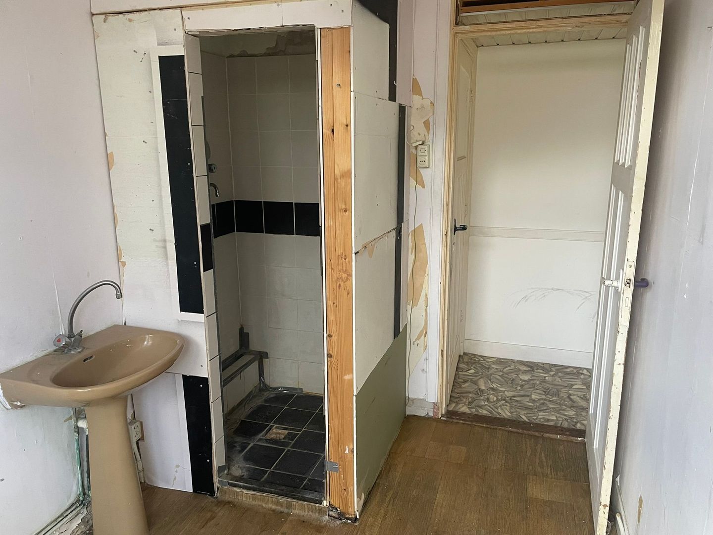 Douchevoorziening met wastafel in achterzij(slaap-)kamer