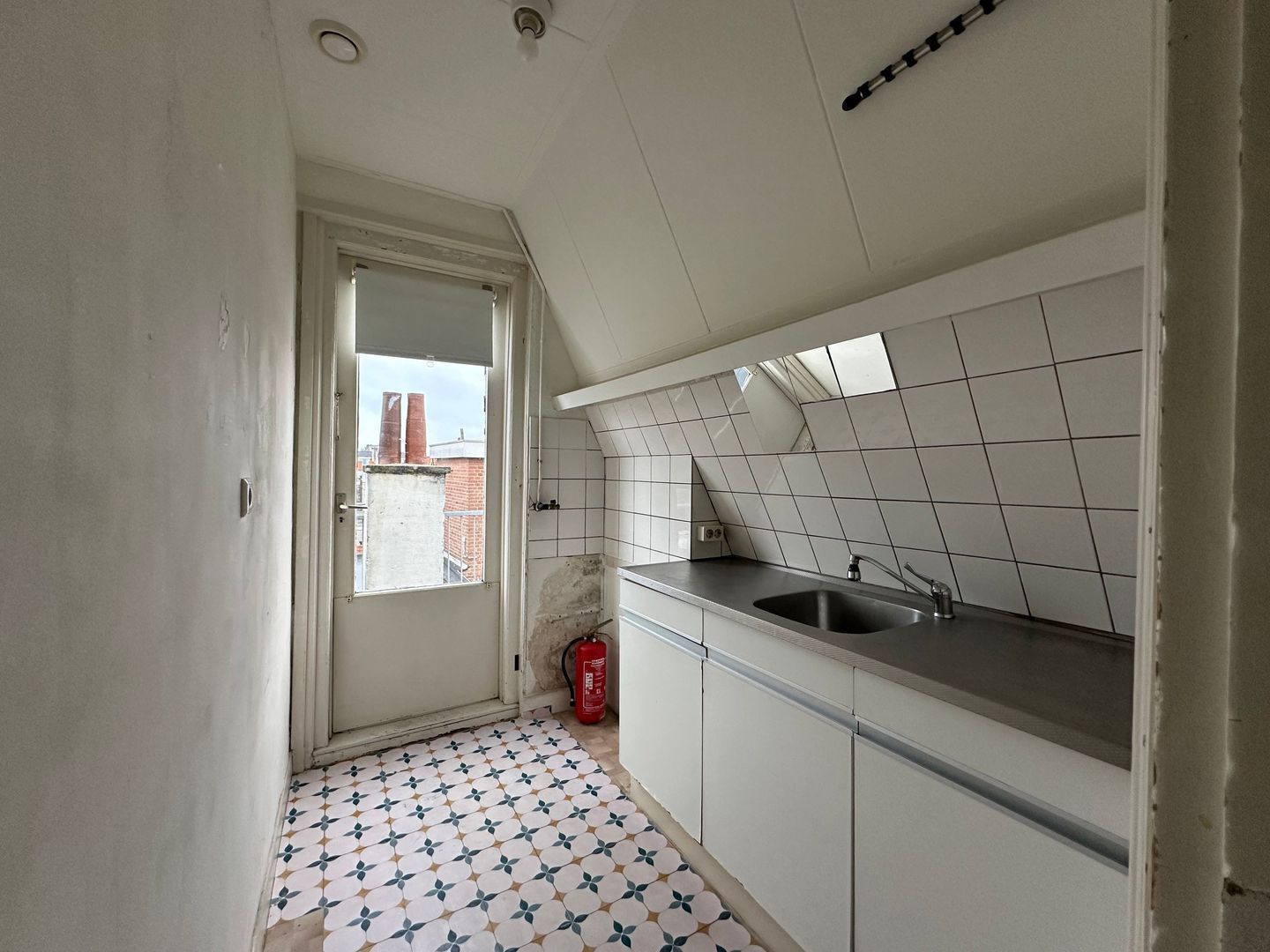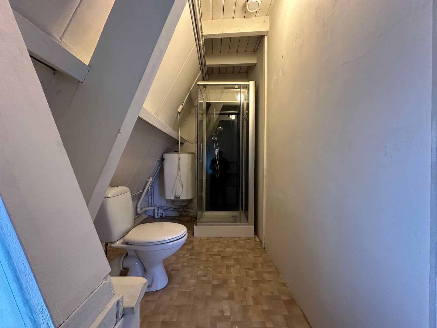 Gedeelde entree op de begane grond. Gedeeld trappenhuis naar 3e etage. Entree appartement op 3e etage. Na entree op 3e etage toegang tot keuken en woonkamer. Via de woonkamer is de doucheruimte te bereiken. Toegang tot het dakterras via de keuken. Doucheruimte voorzien van douchecabine, boiler t.b.v. het warme water, toilet en aansluiting voor een wasmachine.
