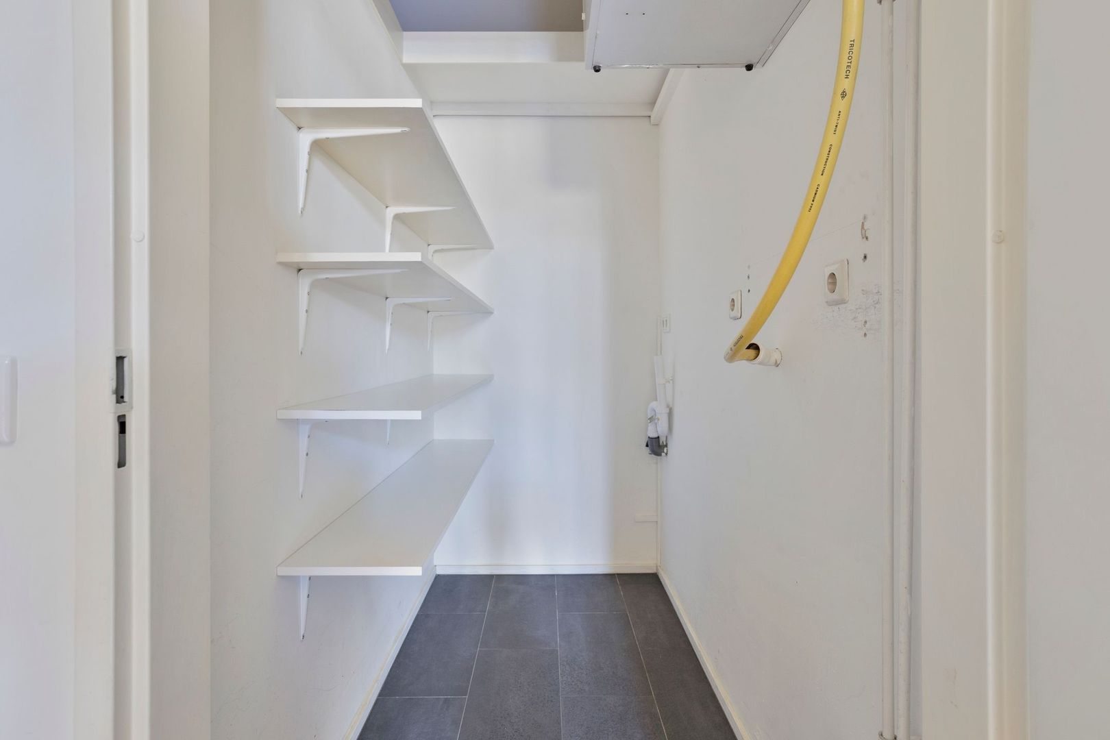 Ruime opbergruimte met wasmachine- en drogeraansluiting.