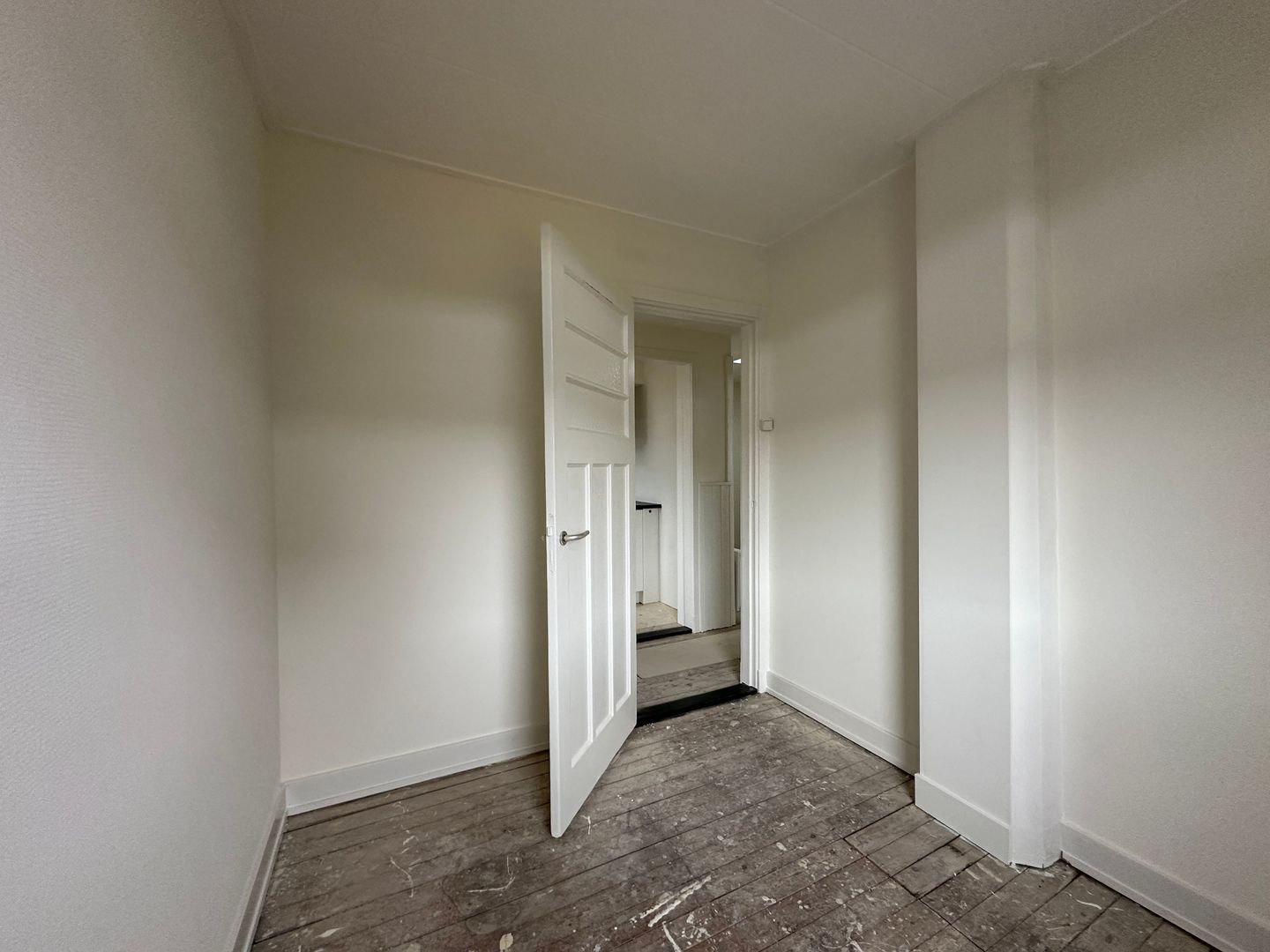 Entree gelegen op de 1e etage. Vaste inpandige trap naar 2e etage. Centrale hal met toegang to alle in de woning aanwezige ruimten zoals de woonkamer, slaapkamers, badkamer en keuken. Via de keuken is het balkon toegankelijk.